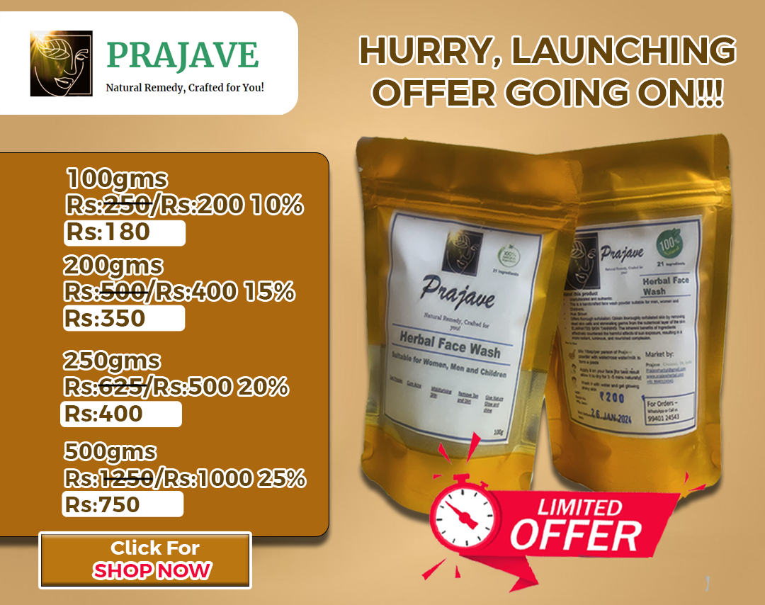 Prajave Face Wash addresses pigmentation, open pores, acne, scars, and dark circles while leaving your face incredibly smooth and beautiful. It restores your skin’s natural pH. This pack provides brighter color and progressively improves your even skin tone.